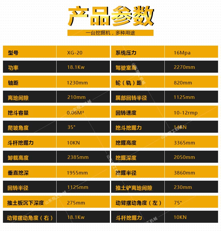 主要适用于农业蔬菜大棚的土地疏松,市政部门的园林绿化、果园苗圃栽树挖坑、混凝土路面破碎,砂石料搅拌等空间狭小的施工作业等。